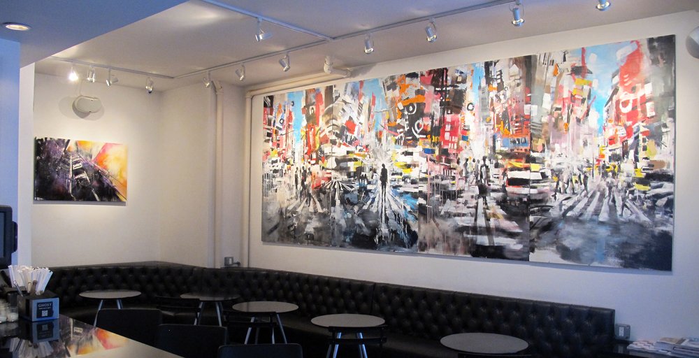 Woodward Gallery is proud to feature Australian Artist BRAD ROBSON at the following locations this Summer Season: The Pool Room Mezzanine of the historic Four Seasons Restaurant at 99 East 52nd Street with large scale urban-scene canvases; with a 15 foot new mural on the Woodward Gallery Project Space at 132A Eldridge Street; and with food paintings at Gourmet Garage, SoHo Windows 24/7 located at 489 Broome Street, NYC.